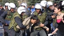 Сүрөттө: милиция демонстранттарды камакка алып жатат.