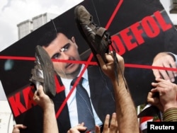 “Сирия ыңкылабы” деп аталган топтун активисттери Орусиянын бир катар өлкөлөрдөгү элчиликтеринин алдына чогулуп, расмий Москваны саясатын өзгөртүүгө үндөштү.