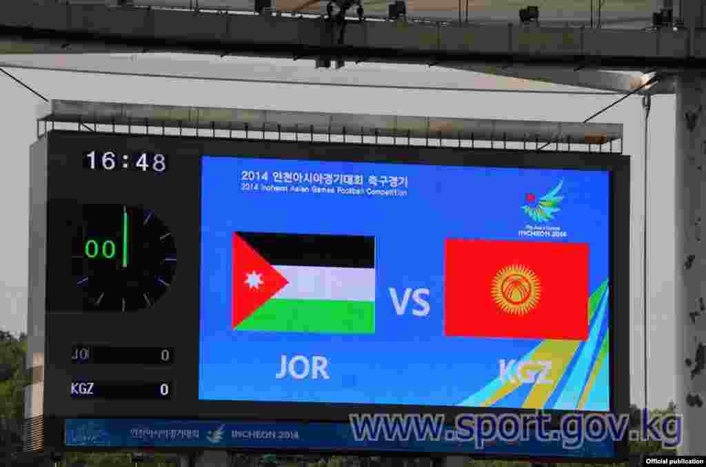 Түштүк Кореяда өтүп жаткан Азия оюндарынын алкагында кыргыз футболчулары иорданиялыктарга 0:2 эсебинде утулуп калды.(Сүрөттөрдү Дене тарбия жана спорт боюнча мамлекеттик агенттик сунуштады.)
