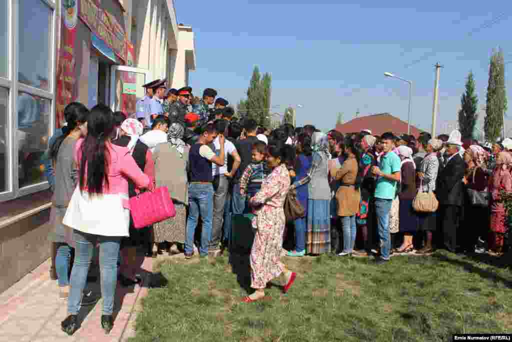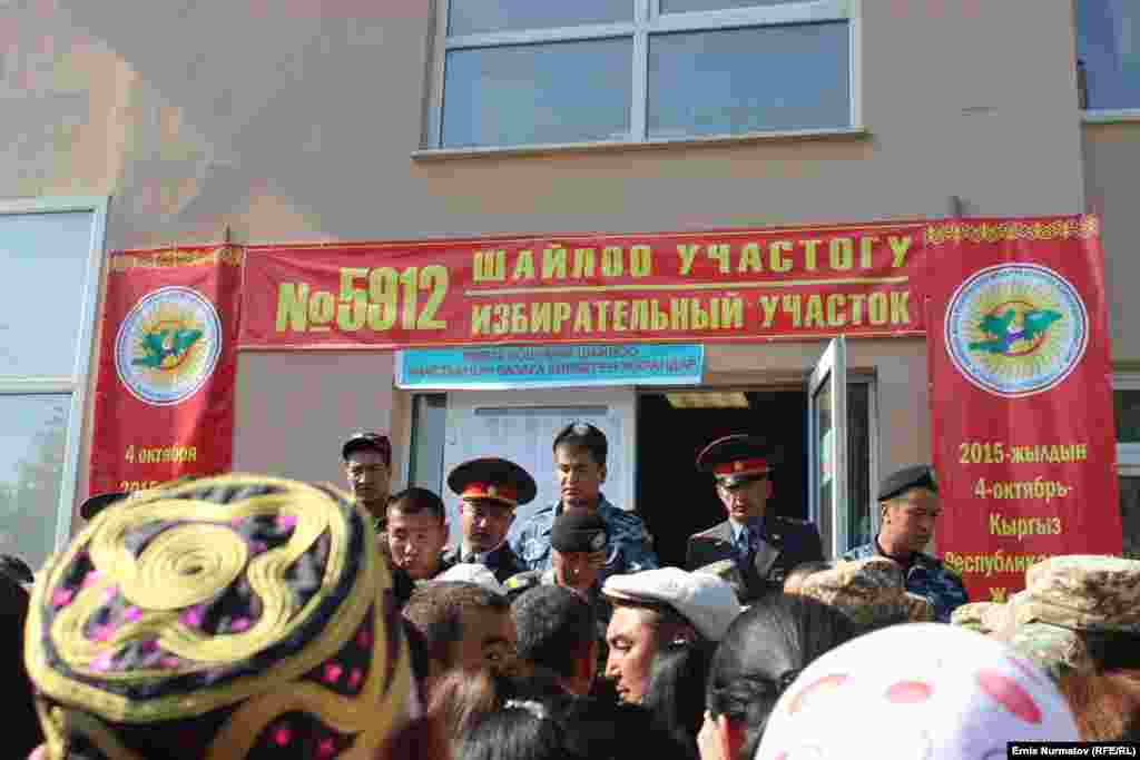 Оштогу №5912 кошумча шайлоо участогуна келген жоокерлер кезектин көптүгүнөн улам добуш бере албай кетишти. Алар келип, шайлоо участкасына кезексиз кире башташкан учурда кезек күтүп турган эл нааразы болуп, кууп жибергенин "Азаттыктын" аймактагы кабарчысы билдирүүдө.