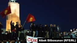 Бишкектин Ала-Тоо аянтында парламенттик шайлоонун жыйынтыгын жокко чыгарууну талап кылган митингчилердин бир бөлүгү президенттик администрация менен Жогорку Кеңештин имаратынын жанына келип, темир кашааларды аттап өтүүгө аракет кылышты. Имаратттын короосуна желим бөтөлкө, таштар ыргытылды.