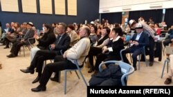 Иш-чарага Мамлекеттик тил жана тил саясаты боюнча улуттук комиссиянын төрагасы Сыртбай Мусаев, Улуттук илимдер академиясынын вице-президенти Осмон Тогусаков , БААУнун президенти Жонатан Беккер жана манасчылар, окутуучулар, студенттер катышууда. (NbA)