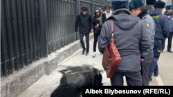 Орусиянын Кыргызстандагы элчилигинин алдында 9-февралда акция өткөрүү үчүн барган адамды милиция кармап кетти. “Азаттыктын” кабарчылары жеринен маалымдагандай, ал адам дөңгөлөктүн тышын өрттөөгө аракет кылган, акциянын максаты тууралуу суроого толук жооп берүүгө үлгүрө алган жок.