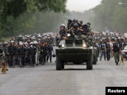 Өлкөнүн күч органдары болсо Бишкектин кире беришиндеги Ново-Покровка айылынын жанында Балыкчы-Бишкек жолун тосуп, аскердик унааларды, атайын бөлүктөрдүн аскерлерин, милицияны жолго тизип койду. Балыкчыдан келаткан У.Барыктабасовдун авто колоннасы аталган тосмого келип такалып, бийлик өкүлдөрү аларды тынч таркатуу боюнча сүйлөшүүлөрдү башташты.
