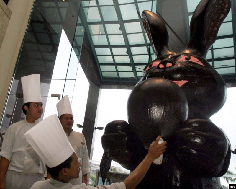 Жакартадагы адеми мейманкананын ашпоздору Пасхага коен-шоколадды камдашууда. Индонезия дүйнөдөгү эң чоң мусулман калктуу мамлекет. Өлкө калкынын 80 проценттен көбү мусулмандар.