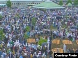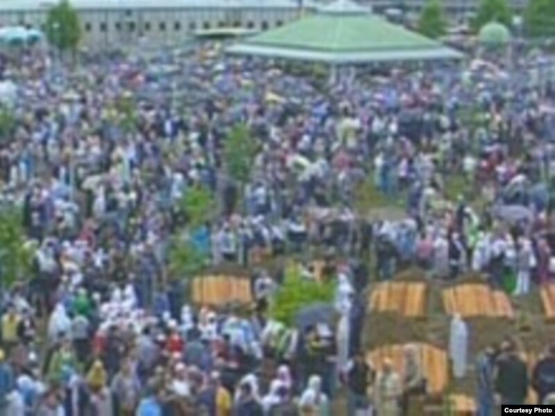 Босния-Герцеговина. Сребреницадагы кыргындан 14 жылдан кийин сөөгү аныкталган 534 адамга жаназа окулууда. 11-июль 2009