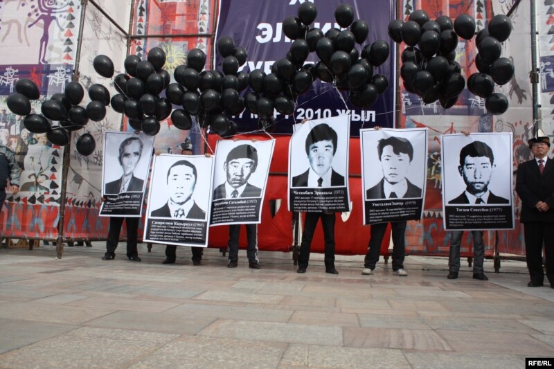 Жыйынга чогулган беш миңдей адам “Үй-бүлөлүк башкарууга жол жок!”, “Исмаил Исаковго боштондук!”, “Бүлекбаев, Аргымбаев, Рыскуловго боштондук!”, “Гуревичти сотко!” “Азаттыкка азаттык!” деген ураандар жазылган плакаттарды көтөрүп турушту.