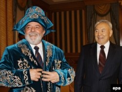 Бразилиянын президенти Луиш Инасио де Силва (солдо) Казакстандын президенти Нурсултан Назарбаев менен. Астана. 17-июнь,  2009-ж.
