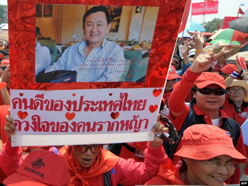 Башкаала Бангкокто 100 миңдей адам жыйналган демонстрацияны "Демократия үчүн жана диктатурага каршы бириккен фронт" деп аталган кыймыл уюштууда. Эл арасында “кызыл көйнөкчөндөр” деп аталып калган бул кыймыл мурдагы премьер-министр Таксин Чинаватраны жактайт. Ал бийликтен 2006-жылы аскерий төңкөрүш аркылуу кулатылган. Кийинчерээк кызматынан кыянат пайдаланган деген жүйөө менен эки жылга сырттан соттолгон. Учурда өз эрки менен сүргүндө Бириккен Араб Эмираттарында жашайт.