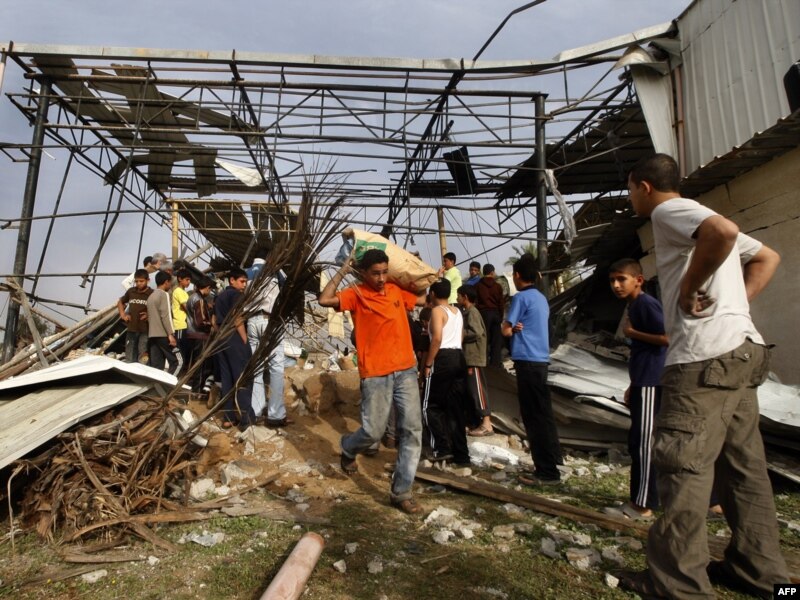 Палестиндер израилдиктердин авиачабуулунан кыйраган сарайды көрүшүүдө. Газанын түштүгүндөгү Хан Юнус лагери. 12-март 2010