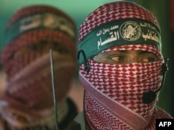 ХАМАС согушчан кыймылдын негиздөөчүлөрүнүн бири Махмуд ал-Мабхухтун урматына өткөрүлгөн аскерий парад учурунда. Газа тилкесиндеги Жабалия качкындар лагери. 17-февраль 2010