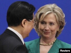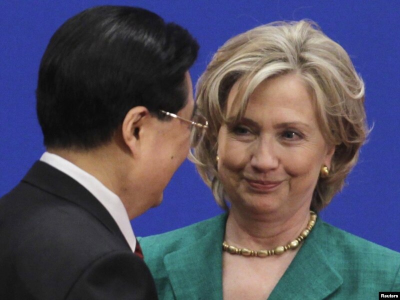 Кытай президенти Ху Цзин Ттао(солдо) жана АКШ Мамткатчысы Хиллари Клинтон. Кытай-АКШ аралык Стратегиялык жана экономикалык диалогдун ачылыш салтанаты учурунда. 24-май 2010