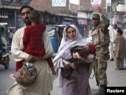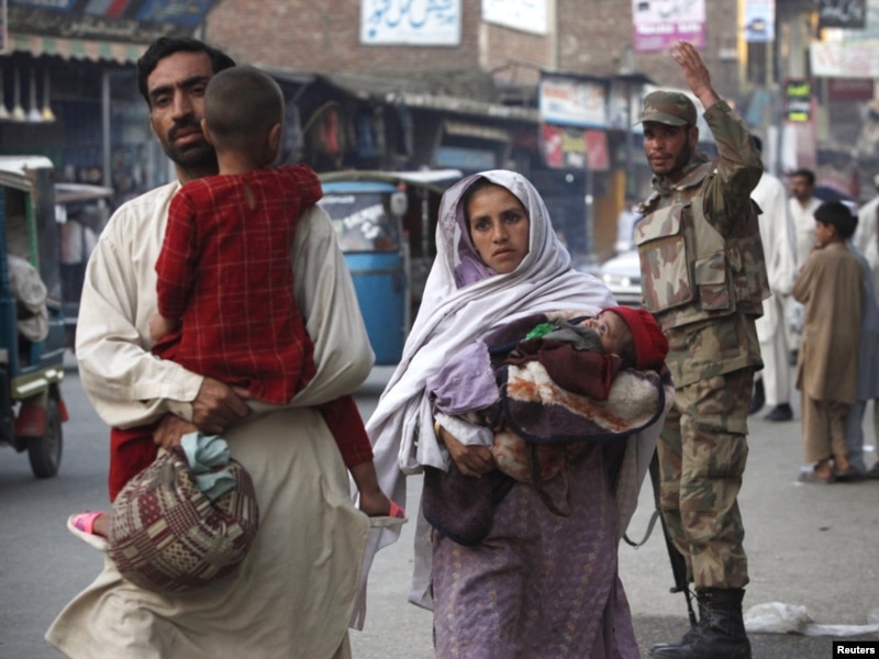 Пакистандык эрди-зайып Мингор шаарында жолдогу тартипке көз салган жоокердин жанынан өтүп баратышат. Түндүк Батыш Чек ара провинциясындагы Сват өрөөнү. 20-март 2010