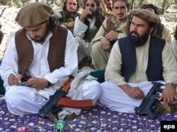 Пакистан талиптеринин башчысы Хекматулла Мехсуд(солдо) жана уруулар башкаруусундагы Түштүк Вазиристан регионундагы талиптердин командири Вали-ур-Рехман(оңдо) журналистер менен кездешүүдө. 4-октябрь 2009