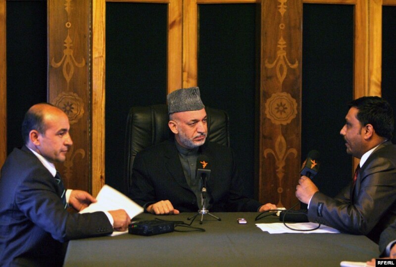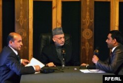 Ооган президенти Хамид Карзай "Азаттыктын" кабарчыларынын суроолоруна жооп берип жатат. 1-ноябрь, 2009