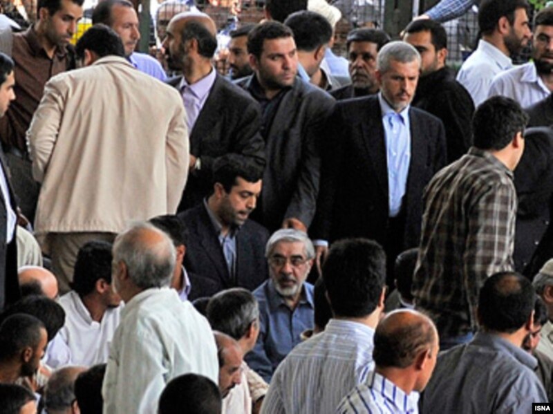 Оппозициянын негизги талапкери Мир Хусейн Мусави да бүгүнкү дааватка катышты (ортодо)