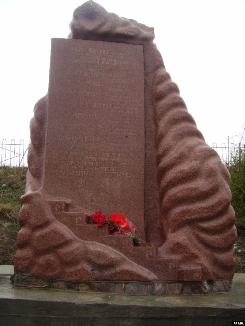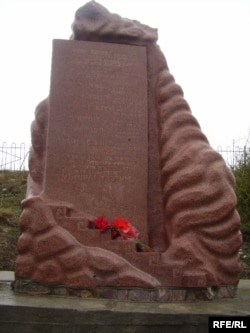 Аксы окуясында окко учкандардын элесине арналган эстелик.