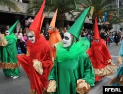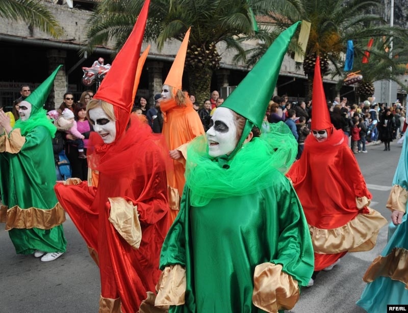 Денеси жарым жартылай жылаңач, жеңил кийим кийинген кыз-келиндер, падышанын же куудулдун, кандайдыр бир жаныбардын, индеецтердин улуттук кийимин кийген жигиттер, добулбастарын койгулап шаардын борбордук көчөлөрүнөн ырдап, бийлеп өтүшөт. Ошондой эле ар бир доордун тарыхый окуялары чагылдырылат.