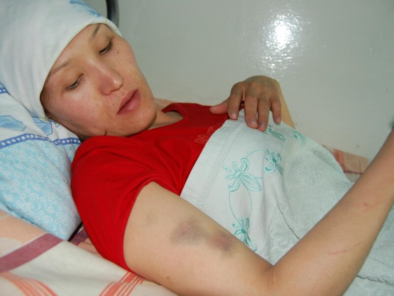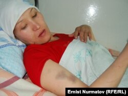 Сабалган журналист Жылдыз Бекбаева ооруканада. Ош, 2011-жылдын 3-майы.