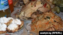 Мындай шаӊдуу ырлар менен музыка көбүнчө албетте уйгурлардын ширин жана бай жайылган дасторконунда болот. Дасторкон демекчи, дагы бир салтты айта кетели – тойлордо таттуу-паттуулар, нан эки кишиге бир подносто берилет. Селимам апа муну мындайча чечмелей кетти: