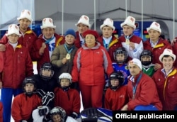 15-февралда президент Роза Отунбаева Бишкектеги муз айдыңында 7-кышкы Азия оюндарынын жеңүүчүлөрү менен жолугушту.