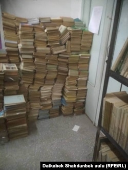 Ош мамлекеттик университетинин китепканасында 40 жылдан ашуун эмгектенген Бүсадат Раева жылдап чогултулган китептердин макулатурага тапшырылганына кейиди.