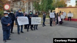 Ири суммада акчасын алдырганын жана арызданганы үчүн жакындары мыйзамсыз камоого кабылганын айткандар тобу 29-октябрда Бишкекте нааразылык акциясына чыгышты.