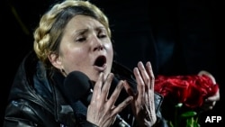 Ишемби күнү Харьковдогу абактан чыгып, Киевдин Майданына келип, миңдеген демонстранттардын алдында майыптардын арабасында отуруп сүйлөгөн Тимошенко жазыксыз өлгөндөр үчүн Янукович менен анын командасы жооптуу экенин айтты.