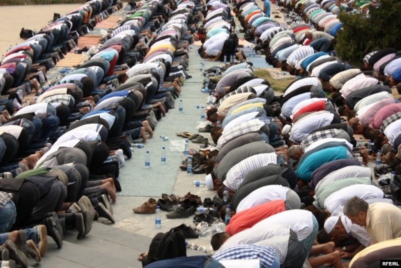 Косово. Ислам кыймылынын мүчөлөрү динди окуу программасына киргизүүнү талап кылып, нааразылык акциясын өткөрүшүүдө. Косово, 2-сентябрь ,2011